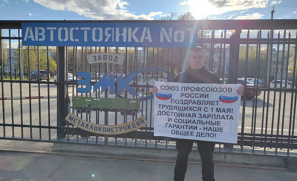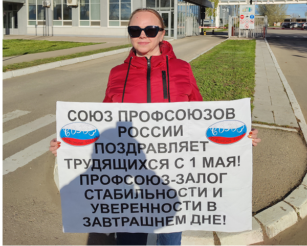 Активисты Союза профсоюзов Саратовской области, лидеры первичных профсоюзных организаций Российского профсоюза металлистов, Межрегионального профсоюза железнодорожников, а также Общероссийского профессионального союза работников образования, культуры, здравоохранения, спорта, государственных, муниципальных и некоммерческих организаций, коммунального хозяйства, торговли и кредитно-финансовых организаций в составе Общероссийского общественного объединения — Союз профсоюзов России поздравили трудящихся с праздником 1 мая на проходных заводов города Энгельса в одиночных пикетах.